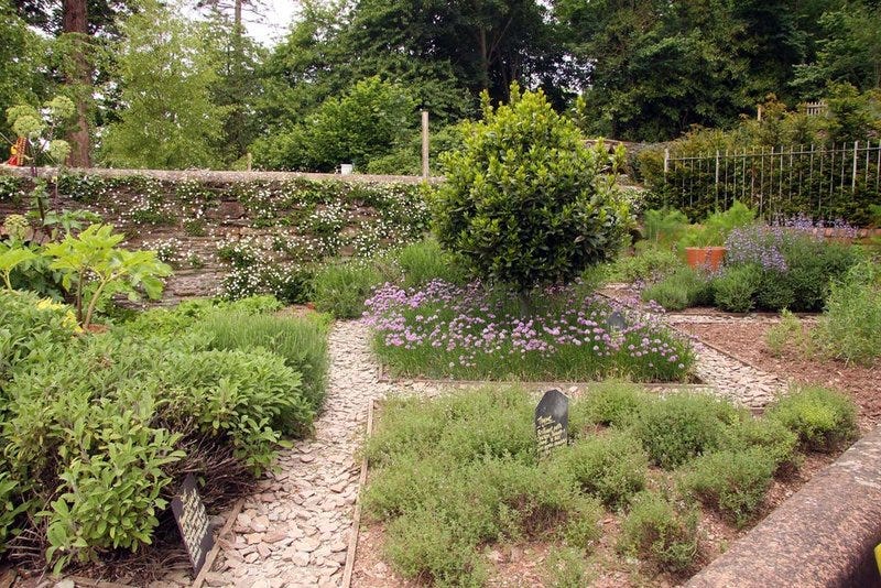 Edibles and herbs: often grown in beautiful patterns among the flowers.