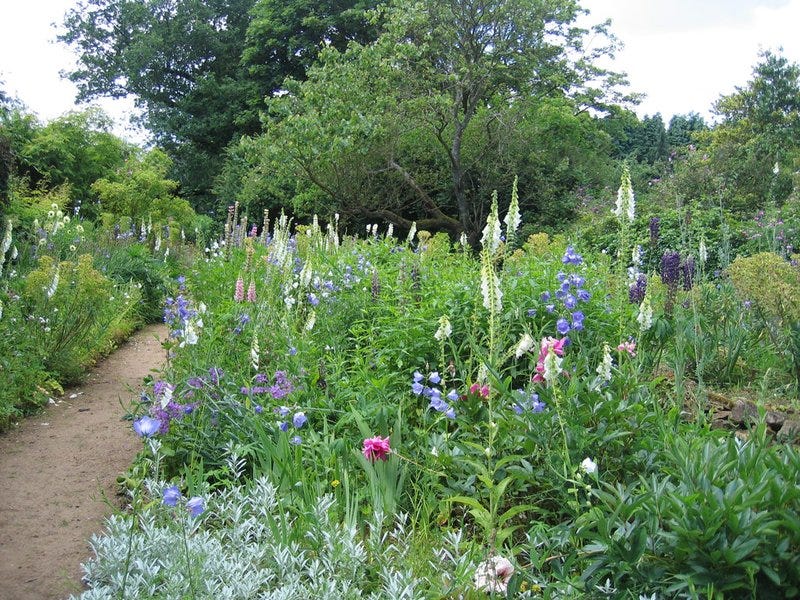 Arts and Crafts planting is often described as painterly. Gertrude Jekyll planned her gardens like an artist using color schemes, different plant heights, and textures to create a beautiful scene.