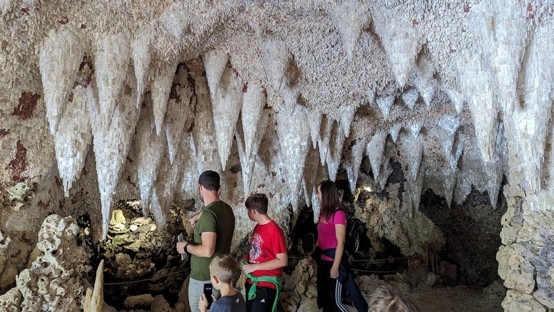 This can also be achieved with artificial materials. A great example is in the Grotto at Painshill Park, a landscape park in London. Here, the grotto is decorated with crystals that reflect the nearby lake water to create a blue/grey vibe that immediately calms any visitor.